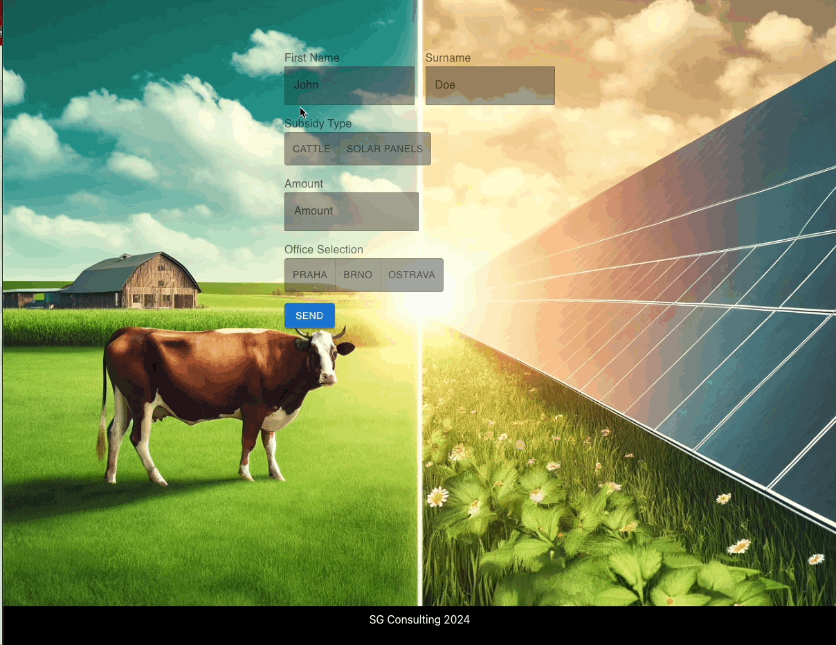 Aplikace je určena pro příjem žádostí o dotace, ověření existence žadatele v registru ARES podle IČO a následně proběhne rozhodnutí o přidělení nebo zamítnutí.